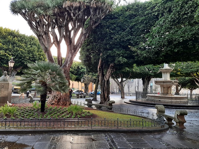Het is fijn wandelen door de stad, lekker rustig kuieren en alles goed bekijken. Het regent een beetje, voor het eerst eigenlijk. Dat doet het hier wel vaker en dat is de reden dat het noorden van Tenerife voor de toeristen/zonzoekers niet zo interessant is. Het zuiden is droger en zonniger en daar bevinden zich de toeristencentra. Na onzewandeling verlaten we de stad weer, op weg naar het Parque Rural Anaga.
