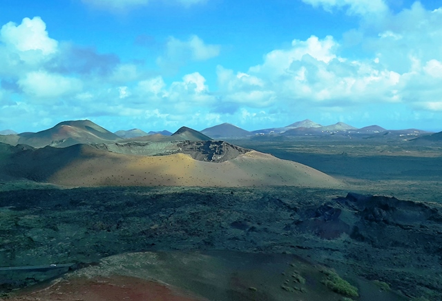 Dit landschap is absoluut onwerkelijk, onaards mooi. Het is eigenlijk met geen pen te beschrijven, dit moet je echt eens in je leven gezien hebben (het is onze tweede keer!!). We genieten volop en zijn onder de indruk dat zoveel moois kan bestaan. Vlakbij bevindt zich het El Diablo restaurant (1970), waarvan Cesar Manrique (zie hierna) een van de architecten is. Je hebt hier een panoramisch 360 graden uitzicht, en je kunt er lekker eten. Het duivel-icoontje dat je hier ziet is ook van de hand van Manrique.