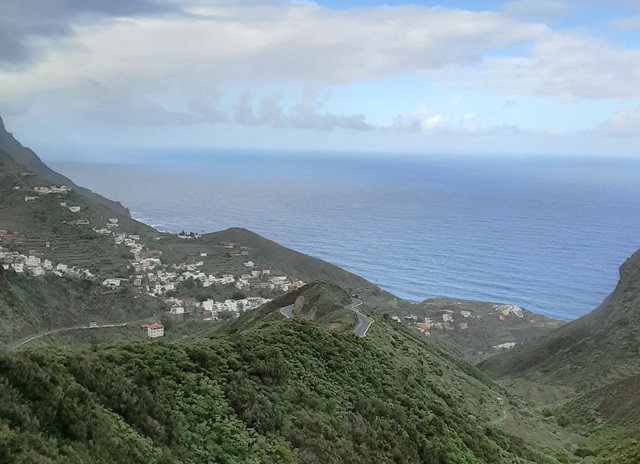De rit door het park naar Taganana aan de noordkust en vandaar weer terug naar het einde van het park bij San Andres is onbeschrijfelijk mooi. Links en rechts, we komen ogen te kort, diepe ravijnen, hoge kliffen en rotsen, panoramische uitzichten waar je U tegen zegt. Na uren rijden bereiken we San Andres, waar we de ‘gewone’ weg weer volgen naar de haven van Santa Cruz.
