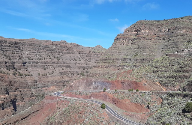 Na onze start in het rustige hoofdstadje San Sebastian bereiken we Valle Gran Rey na een boeiende tocht dwars over het bergachtige eiland. Valle Gran Rey is zoals gezegd een badplaats die is ontstaan uit enkele aan elkaar gegroeide dorpen. Het is er rustig en de sfeer is bijzonder aangenaam. We zien wat hippies, vroeger schijnen er hier meer gewoond te hebben dan nu. Er zijn aan het strand een aantal restaurants en barretjes naast elkaar, er voor loopt een kleine wandelpromenade. Het draagt allemaal bij aan een zeer relaxte sfeer. Hier willen wij wel veel langer zijn. De omgeving is bergachtig en je hebt hier vele fantastische uitzichten. De terugweg, met enkele stops, is weer één groot genieten.