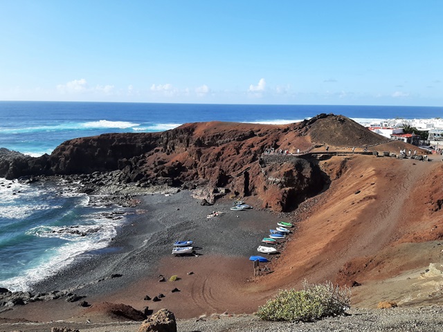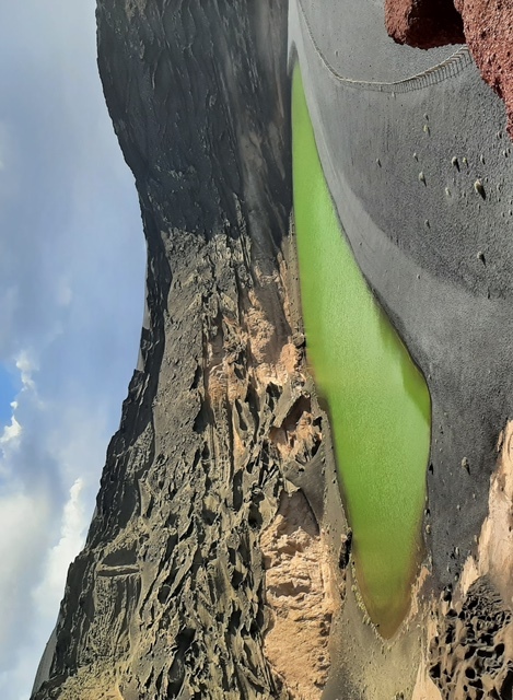 Lanzarote is een eiland naar ons hart. We bezoeken het wijngebied La Geria en daarna ook nog het groene kratermeer van El Golfo. Je loopt dicht langs een klifrand naar het meer, dat inderdaad prachtig groen is. Een topeiland, wat ons betreft.