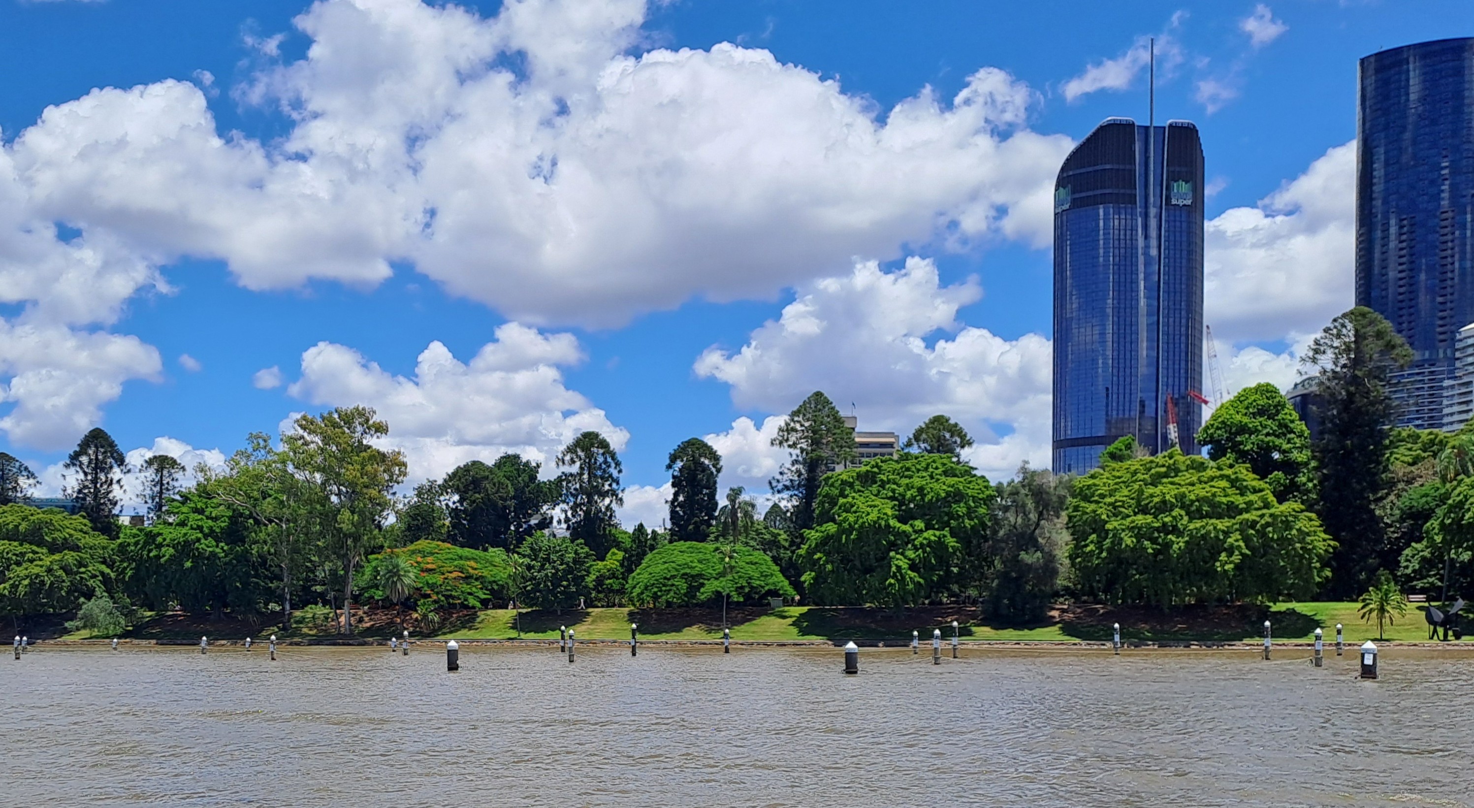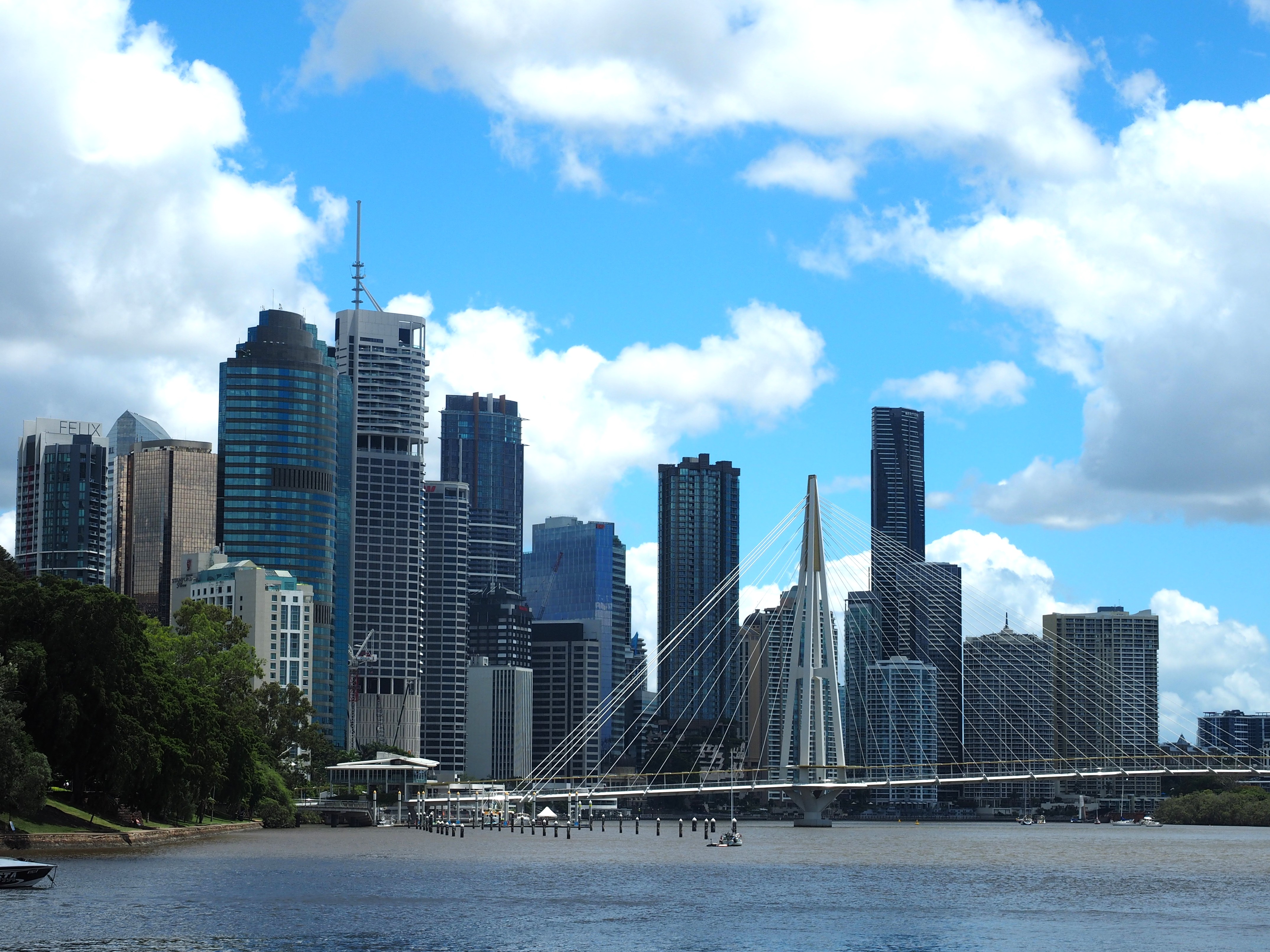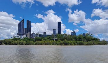 Brisbane, de hoofdstad van de deelstaat Queensland, staat bekend om zijn ontspannen, subtropische levensstijl en wordt vaak de "Sunshine State" hoofdstad genoemd. De stad is vooral populair bij jonge toeristen. De uitstraling is die van een moderne aangename stad. Brisbane heeft 2,7 miljoen inwoners en is daarmee de derde stad van Australië. Deze metropool heeft een typisch subtropisch klimaat met hete, vochtige zomers en zachte, droge winters. Vanaf het einde van de lente tot het begin van de herfst wordt Brisbane regelmatig getroffen door hevige onweersbuien, soms vergezeld door grote hagelstenen en zware windstoten. Vooraf waren wij daar een beetje bezorgd over, want Brisbane heeft op het gebied van zware regenval in de zomer een behoorlijke naam (in 2011 stond de stad zelfs onder water na wekenlange regens). Gelukkig hebben wij schitterend, zonnig en warm weer, wat de stad uitermate plezierig maakt om er te zijn.