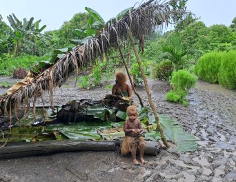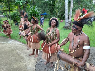 Een rit naar Bibiko Village laat ons zien hoe de westerse cultuur is geïntegreerd in de traditionele manier van leven. We zien hoe het dorpsleven in PNG is en we proeven heerlijke gerechten bereid in kleipotten: taro, banaan, cassave, yam en groene bladgroenten.