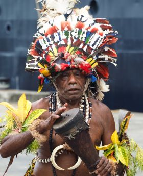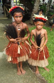 De volgende dag liggen wij voor anker voor Kiriwina. De Kiriwina-eilanden (ook Trobriand-eilanden genaamd) vormen een 450 km² grote archipel van koraaleilanden en atollen ten oosten van het hoofdeiland Nieuw-Guinea. Ze liggen in de provincie Milne Bay van Papoea-Nieuw-Guinea. Het grootste deel van de inheemse bevolking van 12.000 inwoners leeft op het belangrijkste eiland Kiriwina.Het ziet er idyllisch uit. Het eiland is nog heel oorspronkelijk en de vriendelijke bevolking zit klaar om je welkom te heten (uiteraard hebben ze wat spullen in de verkoop). Ook leiden ze je rond in hun dorp, even verderop. We besluiten niet meteen de tender naar het strand te nemen, maar later op de ochtend de oversteek te wagen.