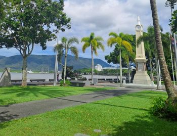 De tweede dag Cairns betekent voor ons vooral wandelen langs de parkjes van deze tropische toeristenstad, maar het is te warm om al te ver te lopen. We bezoeken het Aquarium, erg leuk, met bezoek aan de schildpaddenopvang. Daarna wandelen we weer terug naar de haven. De stad is groen en heeft een tropische vibe. We zijn er al eerder geweest, in 2006. Toen hebben we de kabelbaanrit naar Kuranda gemaakt. Dat hadden we deze keer weer willen doen (op onze ‘eerste’ dag in Cairns), en het was op onze ‘tweede’ dag in Cairns al niet meer mogelijk.