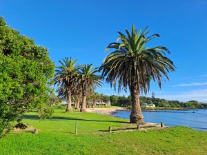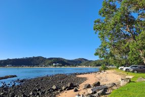 Tot slot komen we bij de Waitangi Treaty Grounds, gelegen aan de schitterende Bay of Islands. Deze plek staat bekend als de "geboorteplaats van Nieuw-Zeeland". Dit is de plek waar op 6 februari 1840 het Verdrag van Waitangi werd ondertekend tussen vertegenwoordigers van de Britse Kroon en meer dan 40 Māori-stamhoofden. Precies over 1 week is het 6 februari en deze nationale feestdag van Nieuw-Zeeland wordt groots gevierd. Er is dan een groot gratis festival op het terrein om de nationale feestdag te vieren, en de voorbereidingen zijn in volle gang. We hebben vanaf deze plaats een prachtig uitzicht over de Bay of Islands.