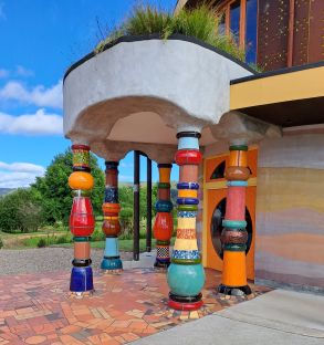 In Kawakawa stoppen we bij de beroemde Hundertwasser-toiletten. Deze unieke openbare toiletten zijn ontworpen door de Oostenrijkse kunstenaar Friedensreich Hundertwasser (1928 – 2000) en zijn een populaire bezienswaardigheid. Het gebouw heeft kleurrijke zuilen, mozaïeken en organische vormen, passend bij Hundertwassers afkeer van rechte lijnen. Hundertwasser woonde en werkte de laatste 25 jaar van zijn leven in de buurt en ontwierp dit project in 1999 als een geschenk aan de stad.