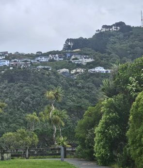 Nieuw-Zeeland is een heuvelachtig en vaak ook bergachtig eiland. Er is geen dorp of stadswijk dat niet half of helemaal tegen een heuvel aangebouwd is, of boven op die heuvel, met prachtige vergezichten. Dat maakt het wonen hier over het algemeen heel aantrekkeljk: mooi ‘golvende’, langzaam oplopende of dalende wijken met huizen bijna altijd op een ‘verhoging’ naast de weg gebouwd. De huizen zelf zijn niet altijd aantrekkelijk. Soms schreeuwen ze om een opknapbeurt en de meeste bungalows hebben niet eens zo veel woonoppervlak. Dat is anders in steden als Wellington en Napier, waar schitterende huizen staan. De huizenprijzen liggen daar vrij hoog.