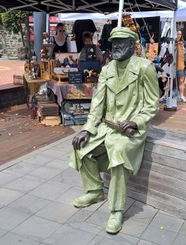 Beneden aangekomen besluiten we om ook hier weer de hop on hop off route te doen, omdat dit voor ons de gemakkelijkste manier is om zo veel mogelijk van deze stad te zien . We rijden langs Te Papa museum en de Oriental Bay en vervolgens weer naar boven naar de Mount Victoria lookout. Cuba Street en Ghuznee Street vormen het hart van het winkelgebied. Cuba Street is een levendige, 925 mete lange, iconische straat. Het staat bekend om zijn Boheemse sfeer en beschikt over een bruisend voetgangersgebied, historische Victoriaanse/Edwardiaanse architectuur, eclectische winkels, cafés en straatkunst. Zeelandia is het al eerder genoemde gebied nabij de top van de calbecar. We rijden door de omgeving, een bijzonder mooi gelegen en fraai vormgegeven woonwijk. Via de parlementsgebouwen rijden we terug naar de haven.