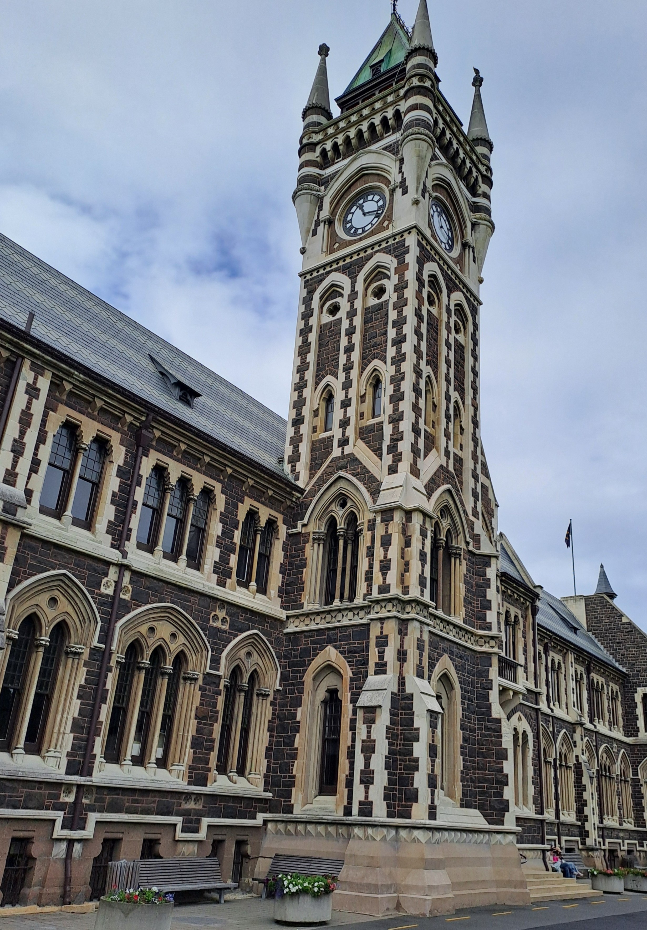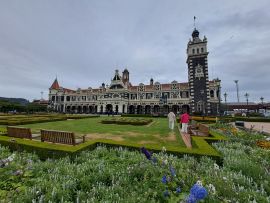 Het stadscentrum van Dunedin is op bijna elke hoek bezaaid met historische gebouwen. Op slechts enkele blokken van het Octagon-plein bevinden zich een aantal bijzonder belangrijke architectonische pareltjes, waaronder het gemeentehuis, de St. Paul's Cathedral, de First Church, het gerechtsgebouw van Dunedin en het treinstation van Dunedin. We stoppen in ieder geval bij het Universiteitsgebouw en het fraaie station om te fotograferen en er even rond te lopen.