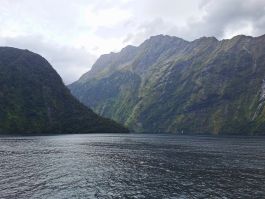 De Doubtful Sound (Patea), bekend als de 'Sound of Silence' is dieper en langer dan Milford Sound en is aanzienlijk afgelegener, omdat hij niet per eigen auto bereikbaar is. Als wij er varen is het vooral in de Milford Sound grijs en mistig weer. Het regent lichtjes en toch staan wij een hele tijd te kijken naar wat we voorgeschoteld krijgen. Het is, toegegeven, niet zo mooi als de plaatjes die we gezien hebben met zonnig weer en een strakblauwe lucht. Maar in ieder geval mooi genoeg. In Milford Sound is het beter weer: het is in ieder geval lichter en de foto’s zijn dan ook iets mooier uitgevallen. Dat was dan Nieuw-Zeeland, we varen nu in twee dagen naar het Australische Tasmanië.