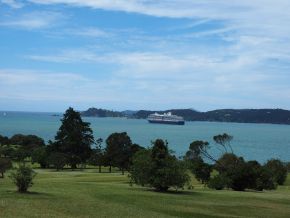 Na twee lange ‘zeedagen’ landen we bij Waitangi, een zeer mooie locatie op het prachtige Noordereiland. Nieuw-Zeeland, eindelijk is een bezoek aan dit land er toch van gekomen. Het is schitterend weer. Het ziet er mooi en vriendelijk uit. We gaan een dagtocht door de Bay of Islands maken. Vanuit de haven steken we een kleine brug over en belanden dan meteen in het stadje Paihia Harbour. Daarna begint een schitterende panoramische route.