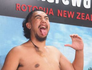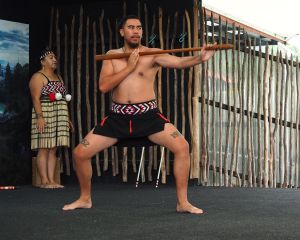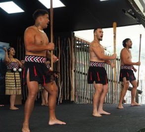 Uiteindelijk komen we terecht in het volledig gebeeldhouwde ontmoetingshuis Whare Tupuna (voorouderlijk huis), waar we een traditioneel Maori-welkom krijgen, met traditionele liederen, dansen en demonstraties van vechtkunsten, waaronder de beroemde Haka.