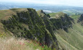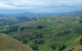 We gaan verder over de weg naar Te Mata Peak (398 m). De top, die over de weg per auto gewoon te bereiken is (wel een heel smalle weg!) biedt een fantastisch uitzicht over de Heretaunga Plains. De Te Mata Peak ligt in het Te Mata Park waar verschillende mooie wandelingen zijn uitgezet. De top is een favoriete spot van hanggliders omdat er een goede wind van de Stille Oceaan wordt geblazen. De berg bestaat uit kalksteen dat ongeveer 2 tot 3,5 miljoen jaar geleden op de zeebodem is gevormd en later door tektonische krachten omhoog is geduwd.
