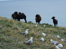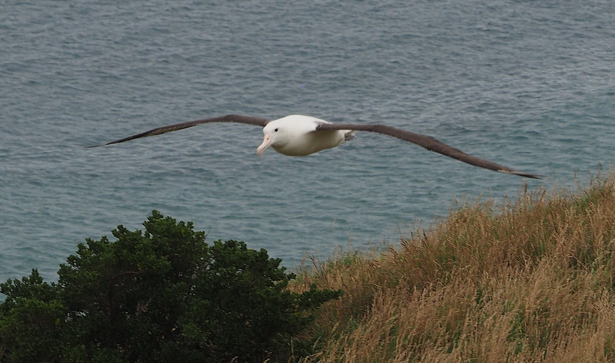 Tararoa Head, op het uiterste puntje, is de thuisbasis van een kolonie noordelijke koningsalbatrossen. Uiteraard bezoeken we die. In het informatiecentrum krijgen we eerst informatie over deze bijzondere dieren, die alleen hier voorkomen. Daarna gaan we ze zien. Het is een steile klim naar het uitzichtpunt, vanaf waar we ze tegen de rotsen zien. Sommigen zitten gewoon rustig op de rots, anderen stijgen op en we zien ze langs vliegen: hun vleugels hebben een enorme spanwijdte van bijna 3 meter.