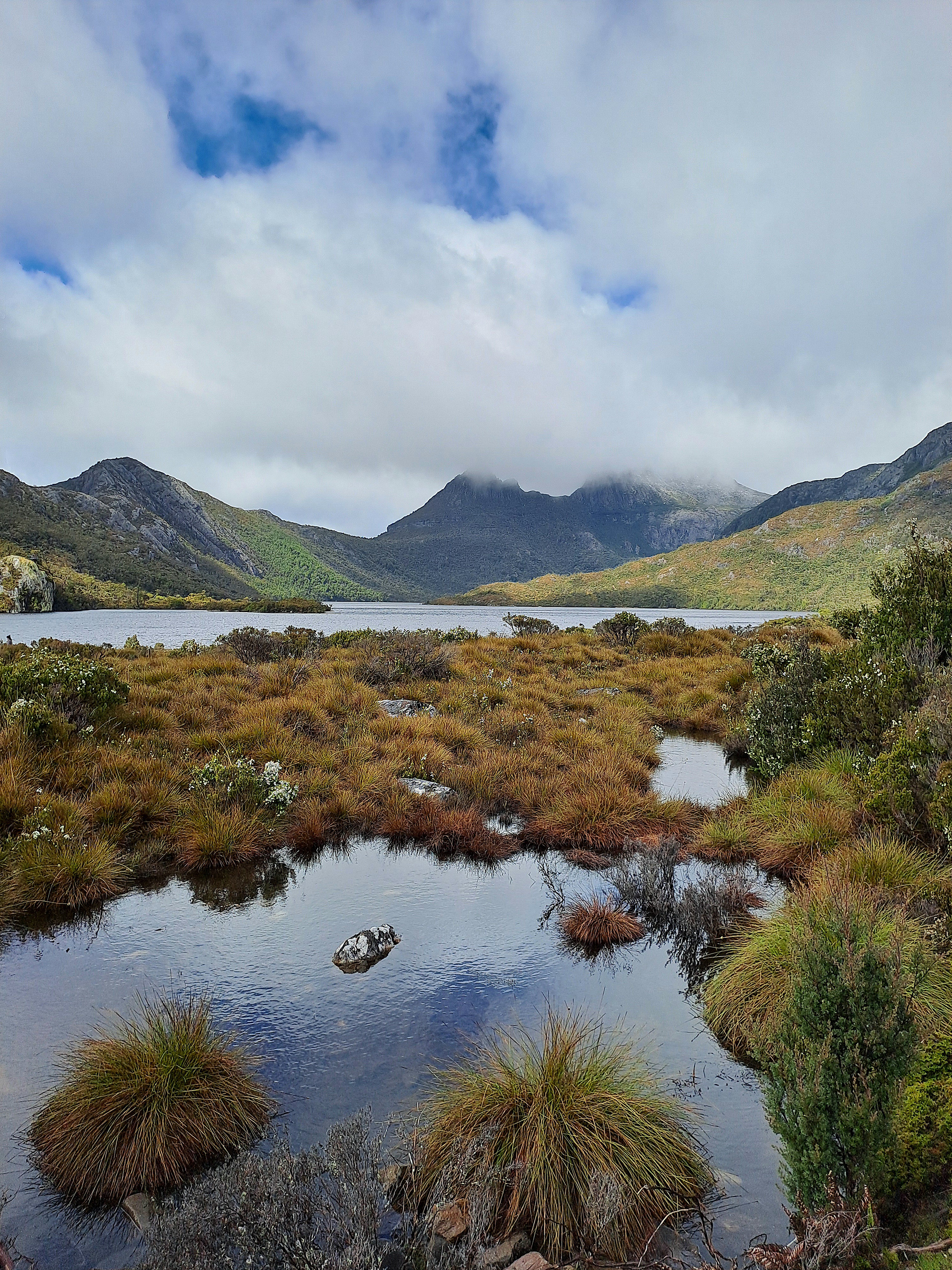 De regio is een paradijs voor die-hard lange afstandswandelaars. Voor ons, de dagjesmensen, is het Dove Lake Circuit (ca. 2-3 uur) zeer populair vanwege de uitzichten op de berg en het veel gefotografeerde historische boothuis uit 1940. Dove Lake is een spectaculair gletsjermeer gelegen aan de voet van Cradle Mountain. Het is een van de meest iconische natuurlijke bezienswaardigheden van de regio en staat bekend om zijn kristalheldere water en dramatische berguitzichten. We doen een deel van de route en genieten volop van zoveel natuurschoon. Het doet ons een beetje denken aan Patagonie, zelfs qua weer. Het weer is extreem onvoorspelbaar en kan "vier seizoenen in één dag" bevatten. Zelfs in de zomer kan het ineens gaan sneeuwen of heel hard gaan regenen. Het landschap verandert dramatisch per seizoen. In de herfst (april/mei) kleuren de inheemse fagus-bomen (de enige loofboom van Australië) de hellingen goudgeel. In de winter is de berg vaak met sneeuw bedekt. In de zomermaanden, de tijd dat wij er zijn, is alles mooi groen en geel. Veel bloemen ook. Het is mogelijk om hier de ‘beruchte’ Tasmaanse duivel te ontmoeten. Die hebben wij niet gezien, wel de grappige wombats.