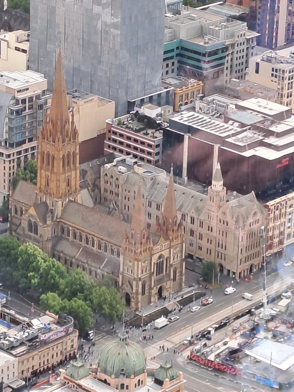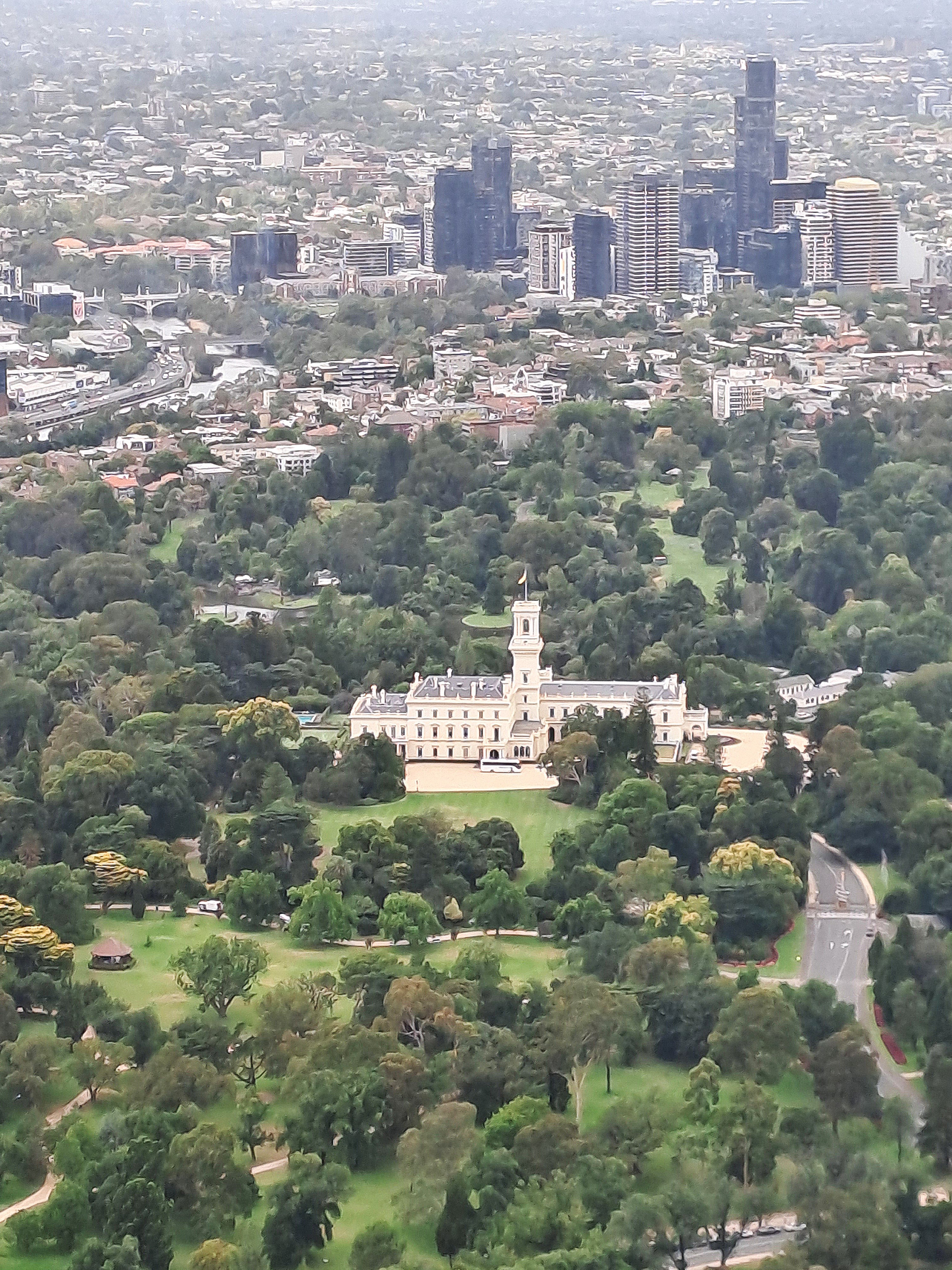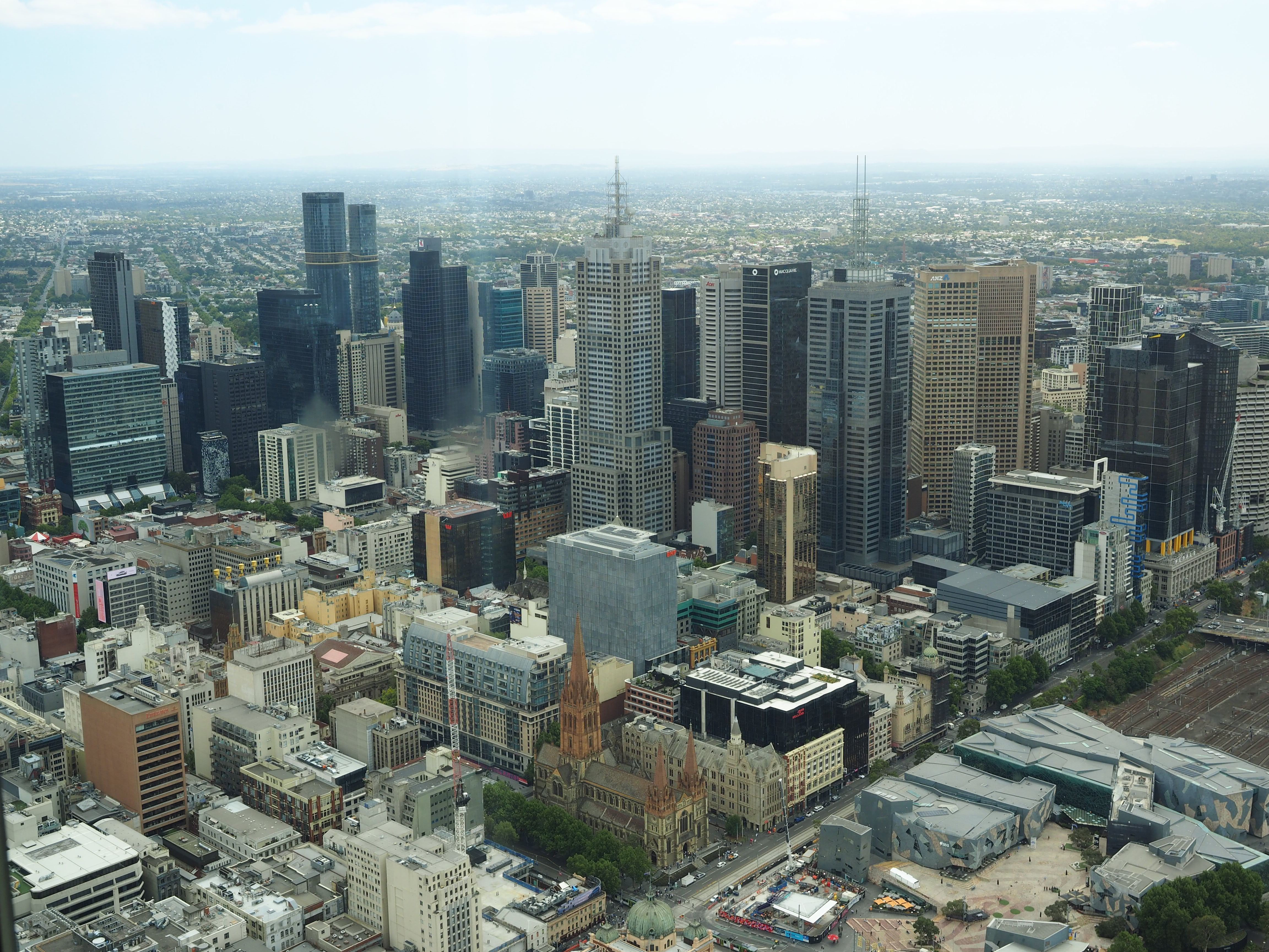 Hier bevindt zich ook het Skydeck, gelegen op de 88e verdieping van de Eureka Tower. Het is het hoogste observatieplatform op het zuidelijk halfrond. Het biedt een 360-graden panoramisch uitzicht over Melbourne en de omliggende regio, van de Dandenong Ranges tot Port Phillip Bay. De razendsnelle lift brengt je in 38 seconden boven. Het verblijf boven is fantastisch, ik zou wel uren naar beneden en in de verte kunnen kijken. We blijven er een half uur, want we moeten verder. We rijden het noorden van de stad binnen. Een kolossaal stadsdeel met veel oude gebouwen tussen de nieuwere wolkenkrabbers.