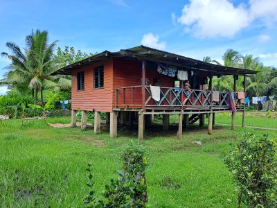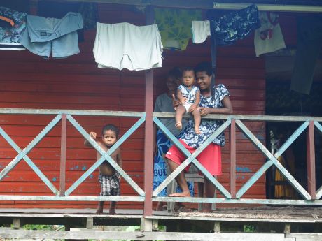Op onze tweede dag in Suva rijden we richting het noorden. Wat ons opvalt, is dat het hier (zeker in de buitenwijken van de stad) allemaal iets minder arm oogt dan op de andere eilanden. We steken de Waimanu-rivier over, beroemd om zijn waterlelies, en stoppen bij een dorp waar de vriendelijke lokale bevolking ons al weer opwacht. Al weer een Kuva welkomstceremonie. Het zou gaan vervelen, denk je, maar dat doet het niet. Voor het enthousiasme van de dorpsbewoners valt ons op. Men heeft het hier niet bepaald heel goed, maar toch kan men dit opbrengen. Niet zo zeer opbrengen, denken we, maar het zit gewoon in de ‘genen’. Erg vriendelijke en voorkomende mensen. We worden weer rondgeleid door de dorp: houten bungalowtjes op een verhoging (vanwege de hevige regens in de natte tijd). Het is bijzonder warm, dus we houden het bij een halve dorpswandeling. Op de terugweg passeren we de regeringsgebouwen en ambassades, wat de stad op deze plekken wat allure geeft.
