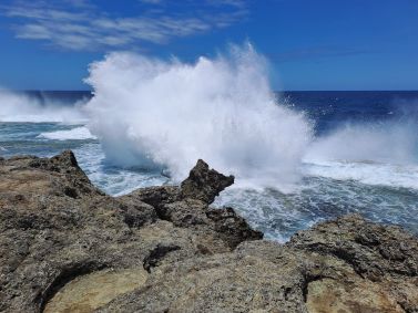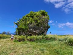 We rijden door naar het tropische strand. Een plaatje van een strand. De golven beuken hier op de kust en regelmatig bereiken de blowholes grote hoogten. Een fascinerend gezicht. We hadden dit het jaar ervoor op Madeira overigens ook al gezien. Tot slot wandelen we naar Tsunamirock. Een flinke rots die ooit bij een tsunami tientallen meters het land in is geblazen. De rots die inmiddels flink begroeid is ligt nu alleen in het vlakke omringende land. Een mooi gezicht. We rijden een mooie route terug naar Nuku’alofa.