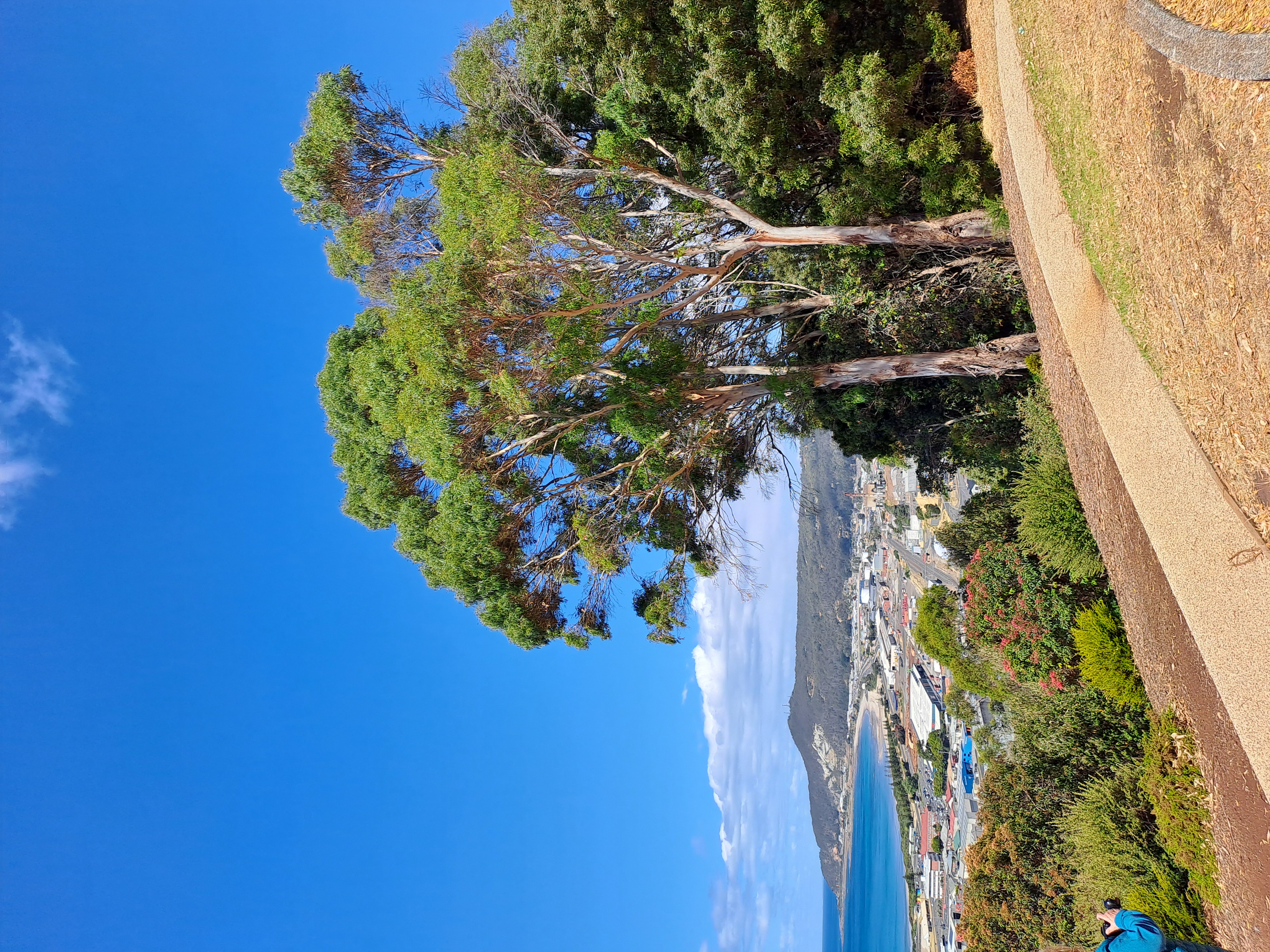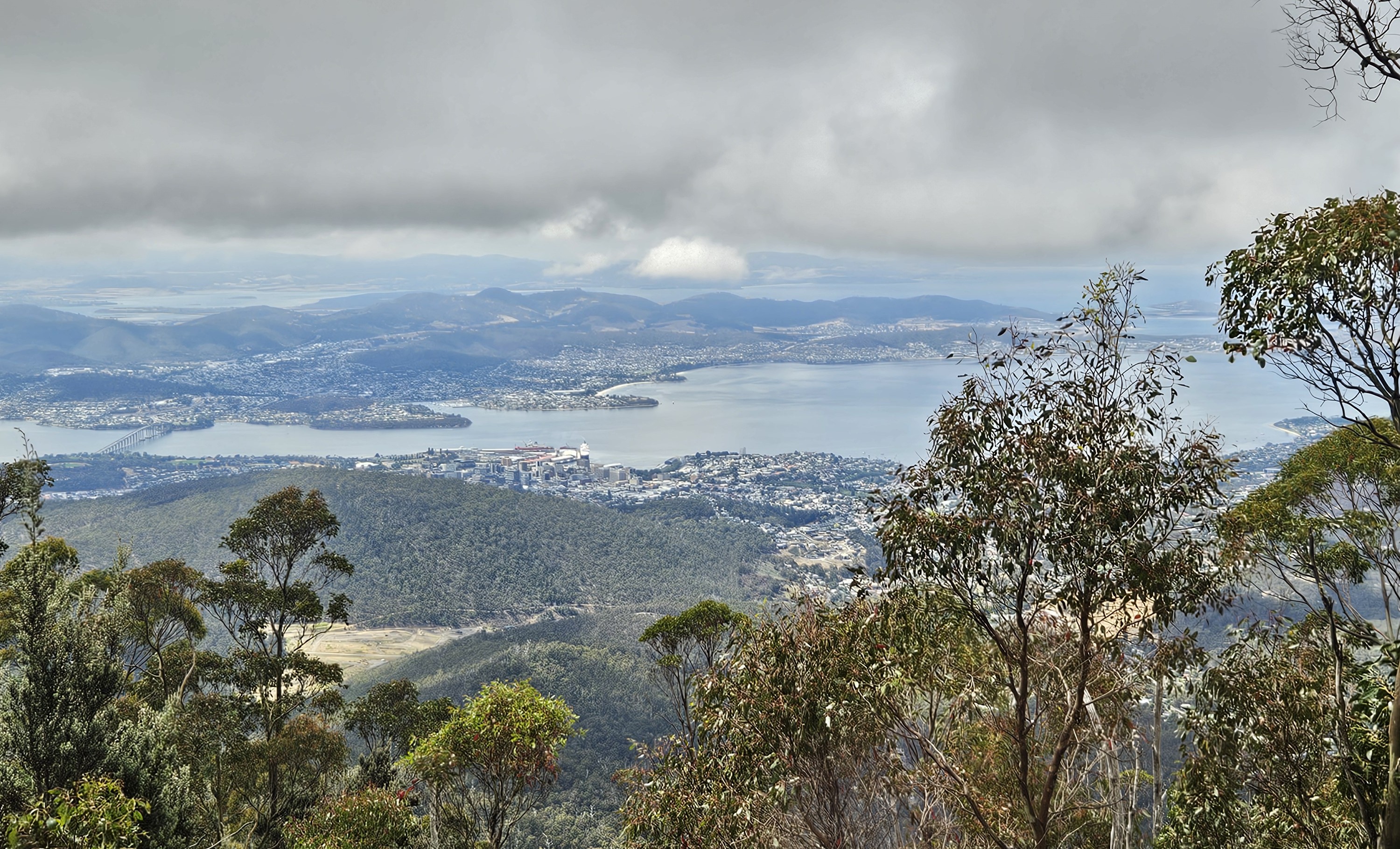 De stad ligt aan de monding van de rivier de Derwent en aan de voet van de 1.271 meter hoge kunanyi / Mount Wellington. We landen in het gezellige haventje. Het is lekker weer, 22 graden en een zonnetje en de stad ziet er zomers uit. We gaan de nabijgelegen Mt. Wellington beklimmen, per bus uiteraard want we zijn geen klimmers. Eerst zijn de uitzichten nog best mooi, we maken halverwege een stop om een boswandeling te maken, maar gaandeweg wordt het zicht steeds minder en als we uiteindelijk op de top belanden zien we helemaal niets. Het is nogal koud, het miezert en waait en het is geen plek om lang te blijven. Als we afdalen komen we snel weer in het gebied waar we nog enigszins uitzichten hebben. We houden onszelf maar voor dat in ieder geval de rit naar de top aardig was.